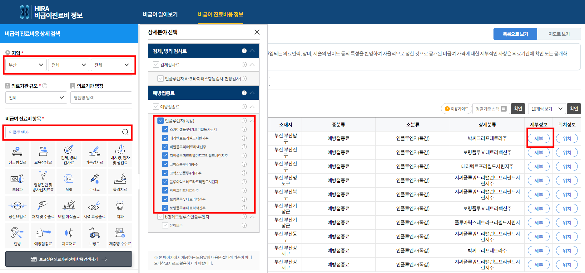 아래 홈페이지로 가시면 독감백신 가격을 비교하실 수 있습니다. 지역에 있는 인플루엔자 접종이 가능한 병원을 조회한 후 "세부"버튼을 클릭하시면 지역의 평균 접종비용과 그 병원의 접종비용을 알려줍니다.
